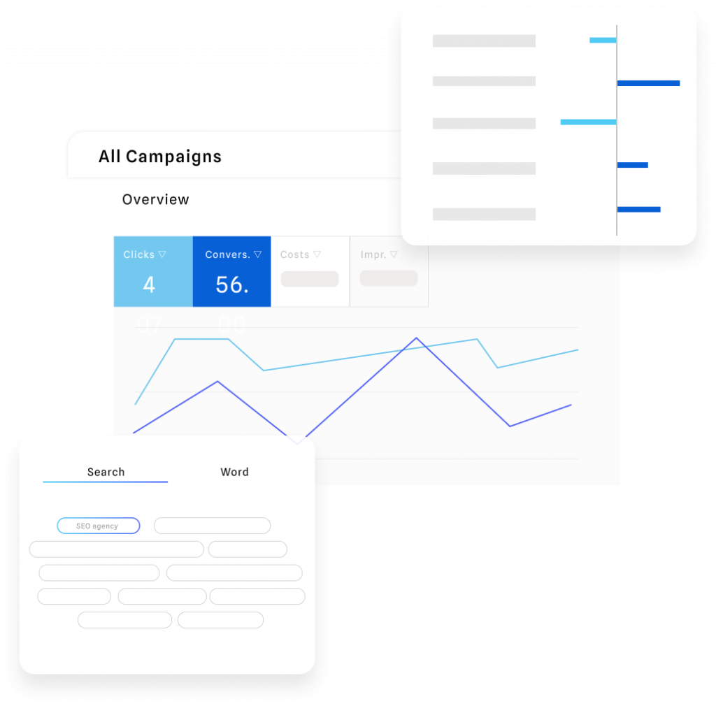 L’accessibilité des données est un enjeu clé au sein des entreprises. Pour prendre les bonnes décisions, il est indispensable d’avoir accès à des données visuelles pour comprendre les résultats des actions de marketing que vous menez. Grâce au dashboarding, il est possible de représenter les indicateurs opérationnels de manière visuelle et en temps réel. Nous regroupons vos données au sein d’un seul et unique tableau de bord. Vous pouvez ainsi suivre l’avancée de vos objectifs et optimiser votre stratégie.